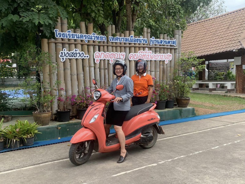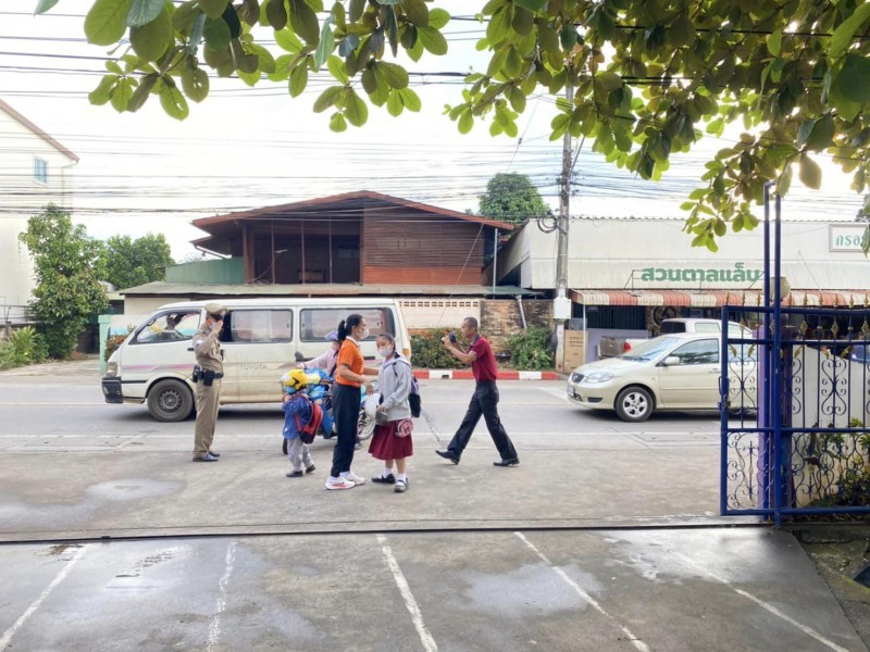 สถานีตำรวจภูธรเมืองน่าน ได้มาบันทึกภาพถ่ายการสวมหมวกนิรภัย ของผู้ปกครองและนักเรียน โรงเรียนดรุณวิทยาฯ