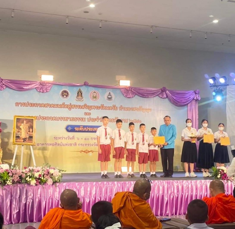 ตัวแทนนักเรียนโรงเรียนดรุณวิทยา เทศบาลเมืองน่าน (บ้านสวนตาล) เข้าร่วมการประกวดสวดมนต์หมู่ฯ ทำนองสรภัญญะ ประเภททีม ๕ คน ระดับประเทศ