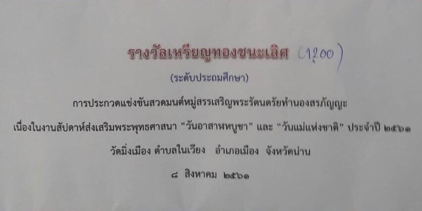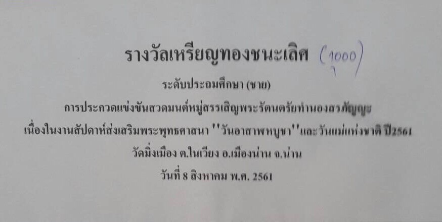 ได้รับรางวัลเหรียญทองชนะเลิศ